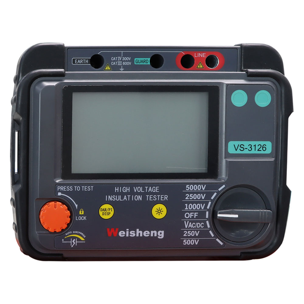 Weshine® VS-3126 - батареямен жұмыс істейдіЖоғары вольтты оқшаулау сынағысандық және аналогты доғалы дисплейі бар, кабельдерге, айналмалы қондырғылардың машиналарына, трансформаторларға, тарату құрылғыларына және өнеркәсіптік қолданбаларға қызмет көрсету және қызмет көрсету кезінде жоғары вольтты оқшаулау кедергісін сынауға арналған.